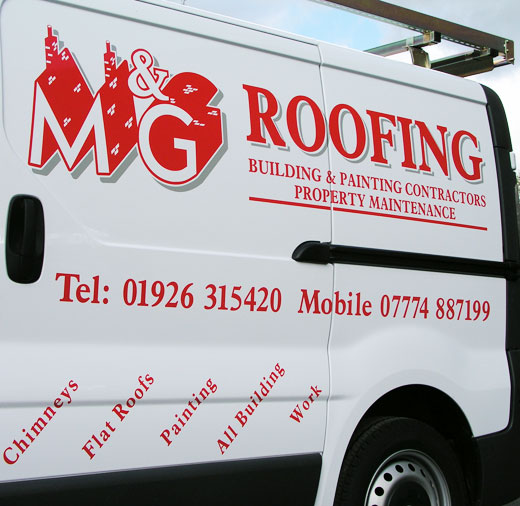 Complete design and installation of your vehicle letteringM&G Roofing -