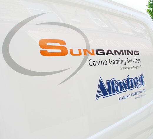 Complete design and installation of your vehicle letteringSun Gaming -