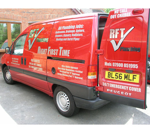 Complete design and installation of your vehicle letteringRFT Plumbing -